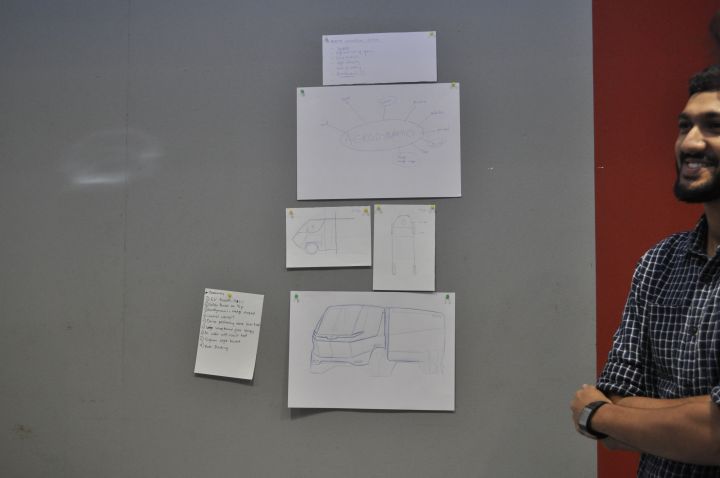 For those of you who think that coming up with a concept doesn't take long, boy are you far from the truth. Bose mentioned that the entire design process takes close to a whopping 48 months to finalise it. And it clearly showed as our team, with our Tata design mentor Sakim, were in a bit of a rut for the first 5-10 minutes at least. Thankfully, Sakim explained that to make a concept, we have to jot down the key targets that the concept needs to fulfill. Thus, we got our key points down to comfort, efficient use of space, easy to drive, high visibility, ease of loading and aerodynamic to add to its radical yet practical nature.