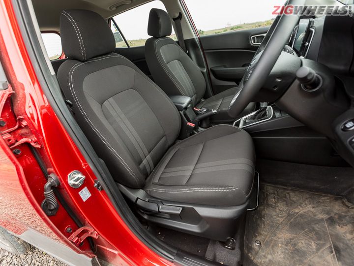 Wrong It's the Venue that offers a more comfortable front seat experience. Kneeroom is marginally better in the Hyundai and the deficit in cabin width is negligible. The Duster's ergonomics cancel out any advantage that it has in terms of size. For instance, your right knee will brush against the door pad while your left will do the same against the centre console. The pedal box feels cramped too, and neither do you have an armrest at the front. You'd have none of these issues in the Venue.