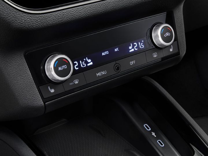 The Kamiq features the latest dashboard design from the Czech manufacturer. The main highlight is the central console that houses the new floating touchscreen infotainment system. You can also see the new climate control knobs which is a departure from the standard unit seen in Skoda cars for a while. Other design highlights include a sporty flat bottom steering wheel.